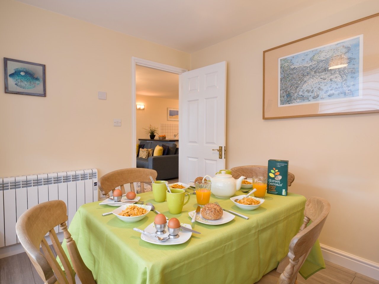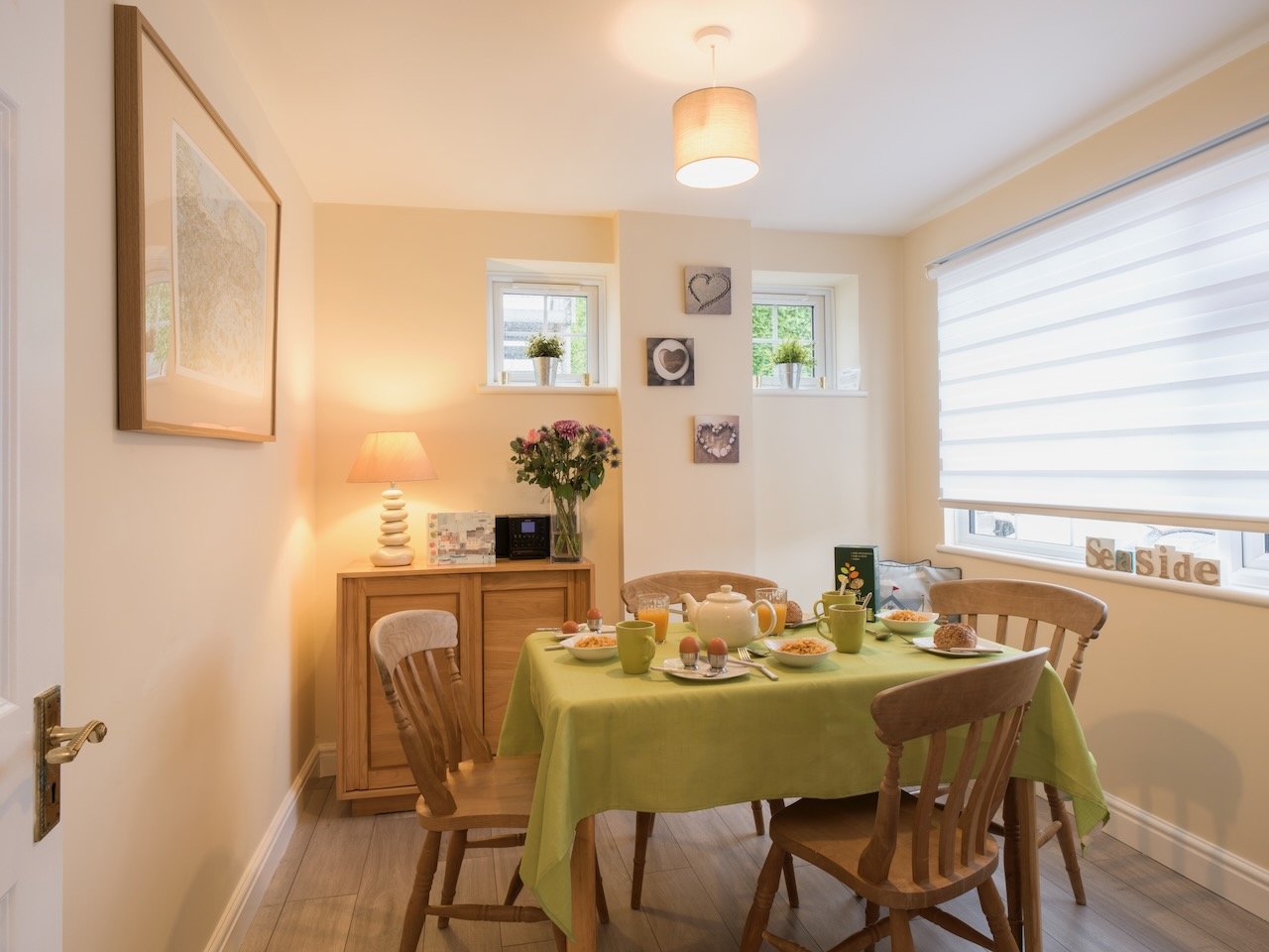 Inside, youβll find a bright open-plan kitchen and living area styled with subtle coastal touches. Sink into the corner sofa for a relaxed evening in, or gather around the rustic wooden dining table to enjoy fresh local produce. A welcome hamper with scones and essentials awaits to start your stay on the right note.