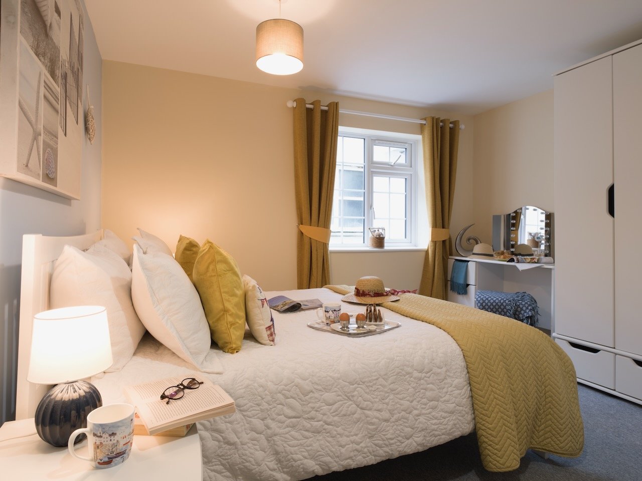 The master bedroom features a luxurious king-sized bed with an onsuite shower room.